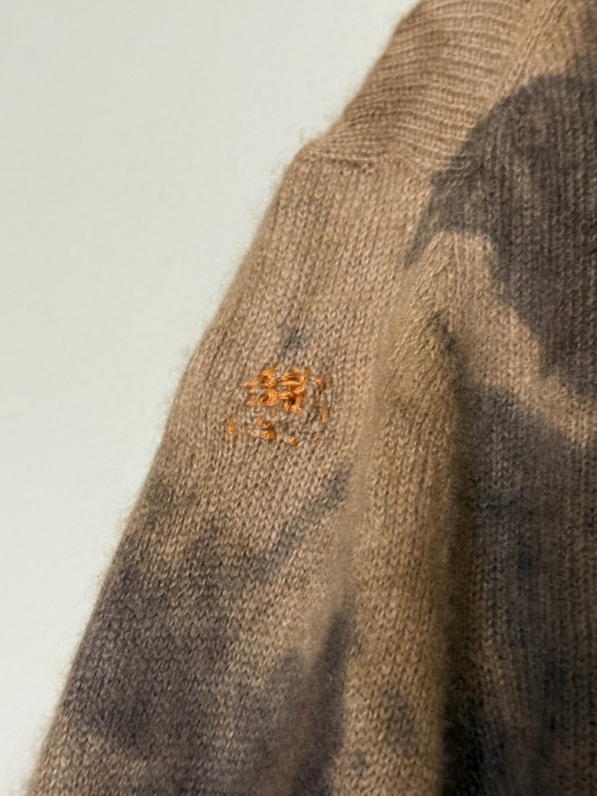 Crafted from luxurious cashmere, this medium sweater showcases eco-printed designs in rich, earthy tones that celebrate natural beauty. The visible mending details add authentic character and tell a story of intentional craftsmanship. Perfect for those who appreciate sustainable fashion without compromising on quality or style. Layer it effortlessly for warmth and sophistication.